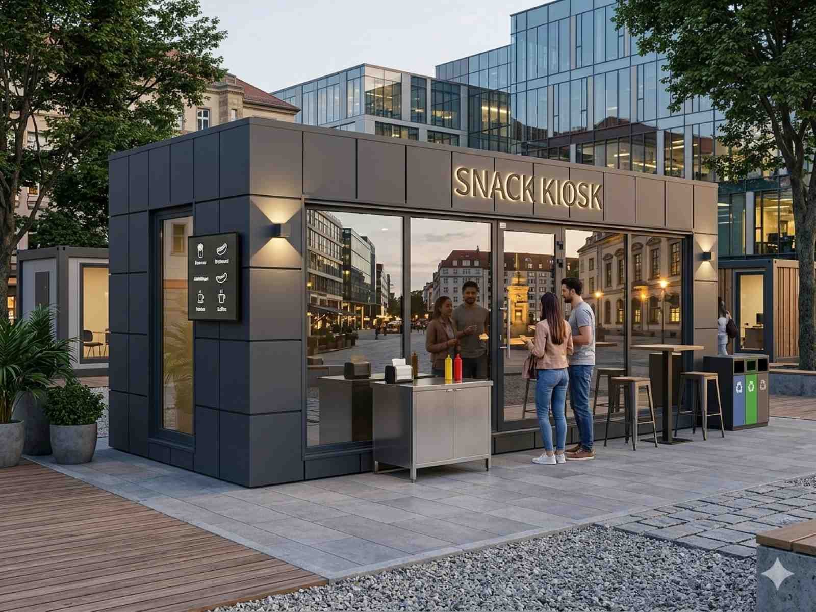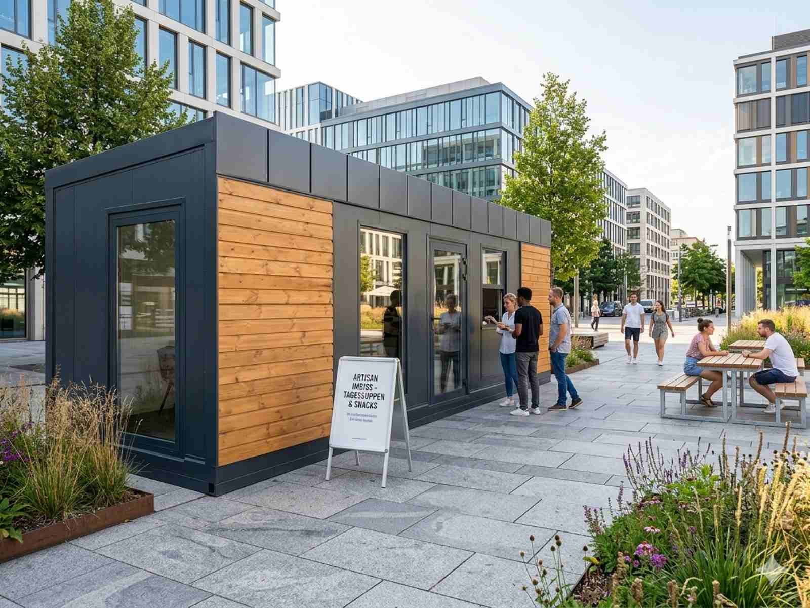 Ein Imbisscontainer kann fast überall aufgestellt werden, sei es in der Innenstadt, auf einem Festival oder auf einem Firmengelände. Das ermöglicht eine schnelle Anpassung an neue Märkte und Kundenströme.